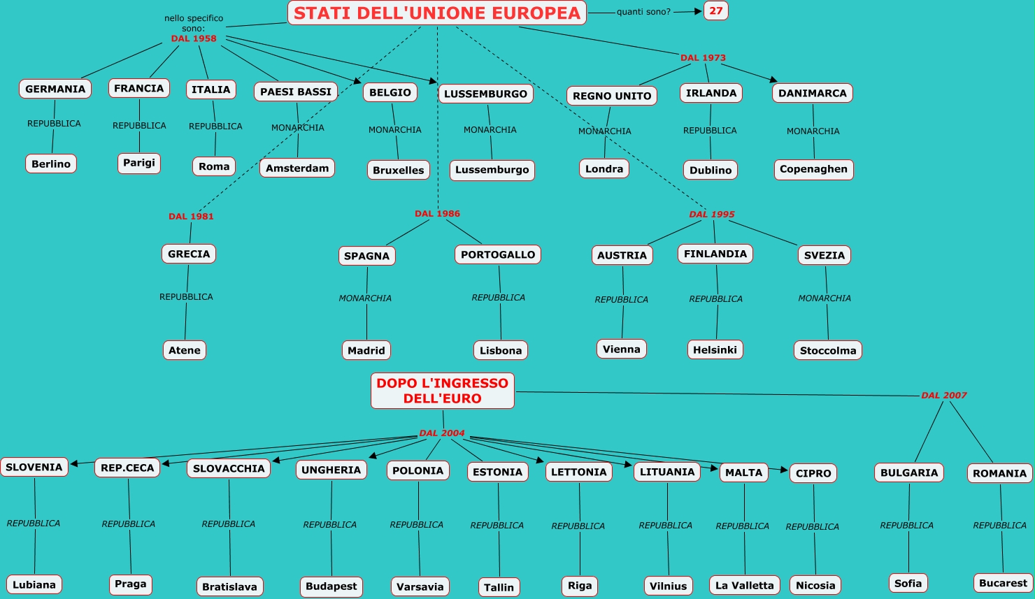 Questa Cmap, creata con IHMC CmapTools, contiene informazioni relative a: Stati Unione Europea, STATI DELL'UNIONE EUROPEA DAL 1986 PORTOGALLO, STATI DELL'UNIONE EUROPEA DAL 1995 AUSTRIA, GERMANIA REPUBBLICA Berlino, UNGHERIA REPUBBLICA Budapest, STATI DELL'UNIONE EUROPEA nello specifico sono: DAL 1958 LUSSEMBURGO, FRANCIA REPUBBLICA Parigi, LITUANIA REPUBBLICA Vilnius, DOPO L'INGRESSO DELL'EURO DAL 2004 ESTONIA, SLOVENIA REPUBBLICA Lubiana, DOPO L'INGRESSO DELL'EURO DAL 2007 BULGARIA, DOPO L'INGRESSO DELL'EURO DAL 2004 SLOVENIA, STATI DELL'UNIONE EUROPEA DAL 1973 DANIMARCA, STATI DELL'UNIONE EUROPEA nello specifico sono: DAL 1958 FRANCIA, CIPRO REPUBBLICA Nicosia, FINLANDIA REPUBBLICA Helsinki, GRECIA REPUBBLICA Atene, LETTONIA REPUBBLICA Riga, DOPO L'INGRESSO DELL'EURO DAL 2004 MALTA, BELGIO MONARCHIA Bruxelles, SVEZIA MONARCHIA Stoccolma