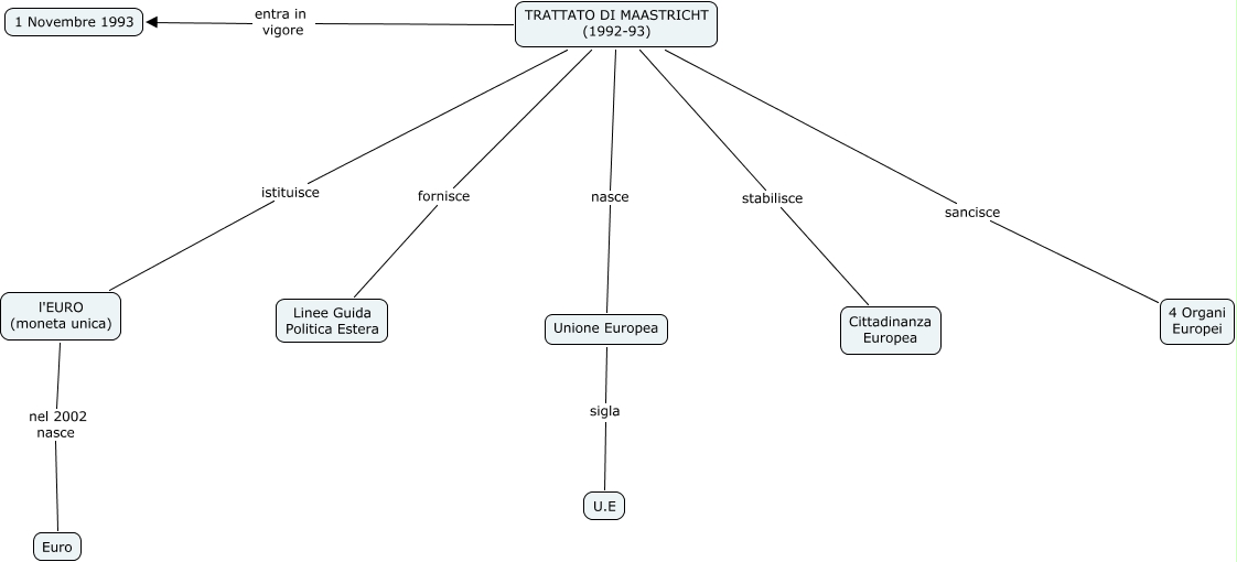 Questa Cmap, creata con IHMC CmapTools, contiene informazioni relative a: Maastricht_roberto locatelli, TRATTATO DI MAASTRICHT (1992-93) stabilisce Cittadinanza Europea, TRATTATO DI MAASTRICHT (1992-93) fornisce Linee Guida Politica Estera, Unione Europea sigla U.E, TRATTATO DI MAASTRICHT (1992-93) entra in vigore 1 Novembre 1993, TRATTATO DI MAASTRICHT (1992-93) sancisce 4 Organi Europei, TRATTATO DI MAASTRICHT (1992-93) nasce Unione Europea, l'EURO (moneta unica) nel 2002 nasce Euro, TRATTATO DI MAASTRICHT (1992-93) istituisce l'EURO (moneta unica)