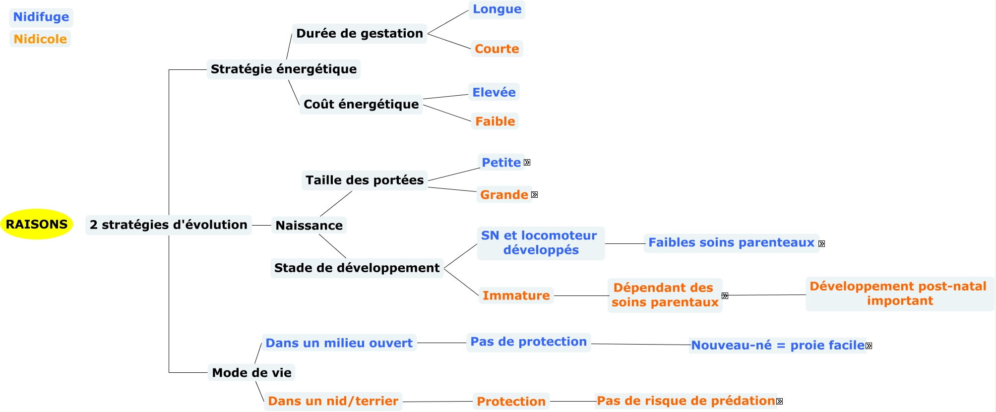 Cette carte de concepts créée avec IHMC CmapTools traite de: 2 stratégies d'évolution, Pas de risque de prédation, Taille des portées Petite, 2 stratégies d'évolution Stratégie énergétique, Naissance Taille des portées, Mode de vie Dans un nid/terrier, 2 stratégies d'évolution Mode de vie, Protection Pas de risque de prédation, Dépendant des soins parentaux, Dans un nid/terrier Protection, Immature Dépendant des soins parentaux, Stade de développement Immature, Pas de protection Nouveau-né = proie facile, Faibles soins parentaux, 2 stratégies d'évolution Naissance, Dépendant des soins parentaux Développement post-natal important, Coût énergétique Faible, Taille des portées Grande, Dans un milieu ouvert Pas de protection, Stade de développement SN et locomoteur développés, Petite