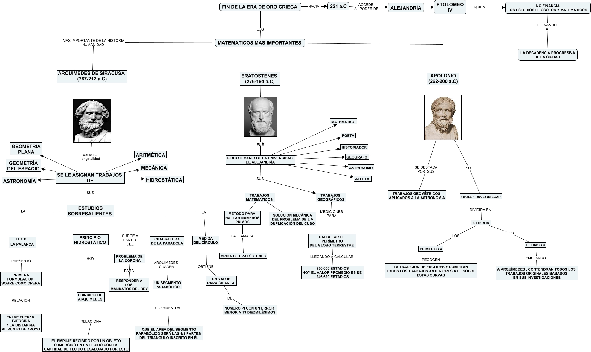 Este Cmap, tiene información relacionada con: Fin de la era de oro Griega, ARQUIMEDES DE SIRACUSA (287-212 a.C), SE LE ASIGNAN TRABAJOS DE MECÁNICA, SE LE ASIGNAN TRABAJOS DE GEOMETRÍA DEL ESPACIO, BIBLIOTECARIO DE LA UNIVERSIDAD DE ALEJANDRÍA SUS TRABAJOS GEOGRÁFICOS, ULTIMOS 4 EMULANDO A ARQUÍMEDES , CONTENDRÁN TODOS LOS TRABAJOS ORIGINALES BASADOS EN SUS INVESTIGACIONES, ALEJANDRÍA PTOLOMEO IV, BIBLIOTECARIO DE LA UNIVERSIDAD DE ALEJANDRÍA POETA, BIBLIOTECARIO DE LA UNIVERSIDAD DE ALEJANDRÍA HISTORIADOR, MATEMATICOS MAS IMPORTANTES ERATÓSTENES (276-194 a.C), OBRA "LAS CÓNICAS" DIVIDIDA EN 8 LIBROS, BIBLIOTECARIO DE LA UNIVERSIDAD DE ALEJANDRÍA MATEMÁTICO, APOLONIO (262-200 a.C), 8 LIBROS LOS PRIMEROS 4, NO FINANCIA LOS ESTUDIOS FILOSOFOS Y MATEMATICOS LLEVANDO A LA DECADENCIA PROGRESIVA DE LA CIUDAD, ERATÓSTENES (276-194 a.C), BIBLIOTECARIO DE LA UNIVERSIDAD DE ALEJANDRÍA SUS TRABAJOS MATEMÁTICOS, ESTUDIOS SOBRESALIENTES EL PRINCIPIO HIDROSTÁTICO, FIN DE LA ERA DE ORO GRIEGA HACIA 221 a.C, CALCULAR EL PERÍMETRO DEL GLOBO TERRESTRE LLEGANDO A CALCULAR 250.000 ESTADIOS HOY EL VALOR PROMEDIO ES DE 246.620 ESTADIOS, ESTUDIOS SOBRESALIENTES LA MEDIDA DEL CÍRCULO