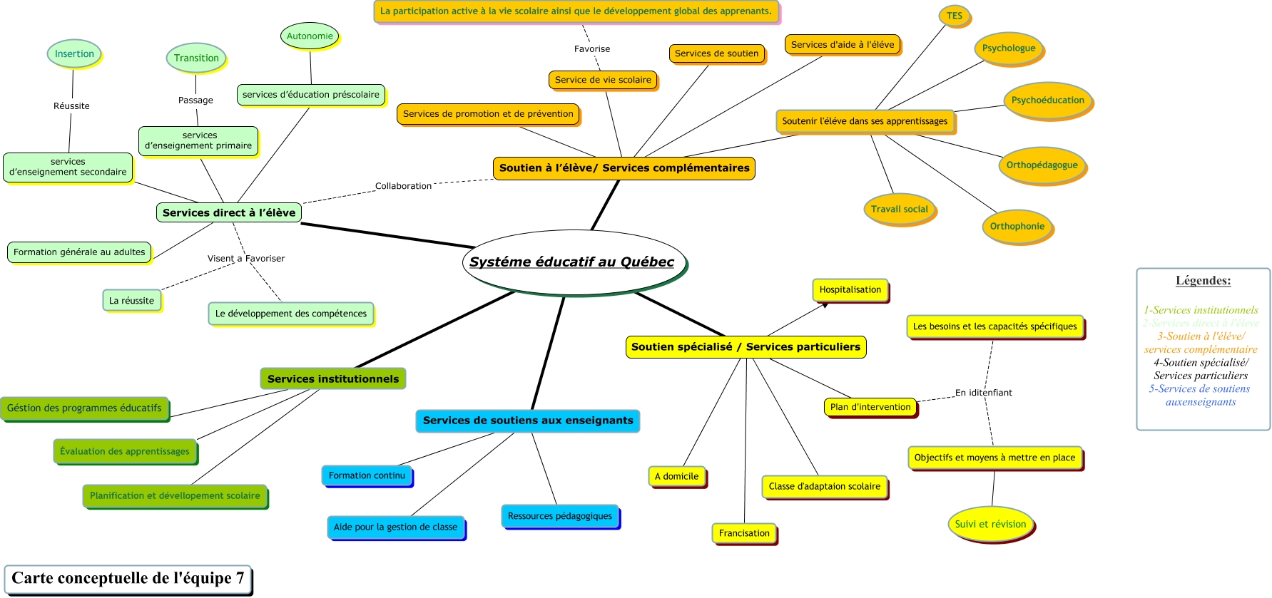 Cette carte de concepts créée avec IHMC CmapTools traite de: Ebauche 1, Services de soutiens aux enseignants Aide pour la gestion de classe, Soutenir l'éléve dans ses apprentissages Psychologue, Systéme éducatif au Québec Services de soutiens aux enseignants, services d’enseignement primaire Passage Transition, Soutenir l'éléve dans ses apprentissages Orthopédagogue, Services direct à l’élève services d’enseignement primaire, Services direct à l’élève Visent a Favoriser La réussite, Services direct à l’élève Formation générale au adultes, Services direct à l’élève services d’enseignement secondaire, Services de soutiens aux enseignants Ressources pédagogiques, Soutien spécialisé / Services particuliers Hospitalisation, Systéme éducatif au Québec Services institutionnels, Soutenir l'éléve dans ses apprentissages Orthophonie, Services direct à l’élève services d’éducation préscolaire, Soutien spécialisé / Services particuliers Plan d'intervention, Soutenir l'éléve dans ses apprentissages Travail social, services d’éducation préscolaire Autonomie, Soutenir l'éléve dans ses apprentissages TES, Services institutionnels Évaluation des apprentissages, Services institutionnels Géstion des programmes éducatifs