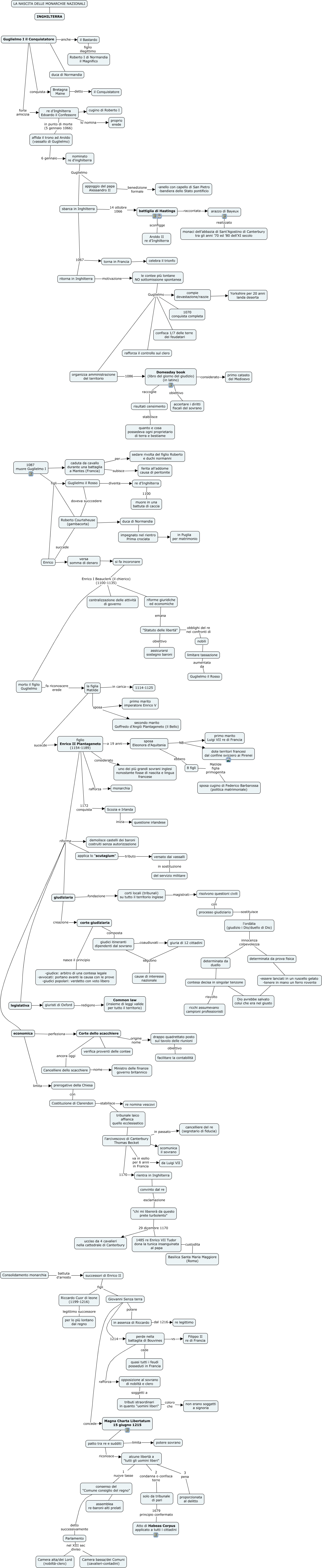 Questa Cmap, creata con IHMC CmapTools, contiene informazioni relative a: 3 Inghilterra, Giovanni Senza terra 1214 perde nella battaglia di Bouvines, arazzo di Bayeux realizzato monaci dell’abbazia di Sant’Agostino di Canterbury tra gli anni ’70 ed ’80 dell’XI secolo, 1087 muore Guglielmo I ???? caduta da cavallo durante una battaglia a Mantes (Francia), Magna Charta Libertatum 15 giugno 1215 ???? patto tra re e sudditi, alcune libertà a "tutti gli uomini liberi" 2 condanna o confisca terre solo da tribunale di pari, sbarca in Inghilterra 1067 ritorna in Inghilterra, le contee più lontane NO sottomissione spontanea Guglielmo rafforza il controllo sul clero, consenso del "Comune consiglio del regno" detto successivamente Parlamento, giudiziaria creazione corte giudiziaria, figlio Enrico II Plantageneto (1154-1189) 1172 conquista Scozia e Irlanda, l'ordàlia (giudizio i Dio/duello di Dio) innocenza colpevolezza determinata da prova fisica, figlio Enrico II Plantageneto (1154-1189) riforme economica, nominato re d'inghilterra Guglielmo sbarca in Inghilterra, l'arcivescovo di Canterbury Thomas Becket in passato cancelliere del re (segretario di fiducia), corte giudiziaria composta giudici itineranti dipendenti dal sovrano, Guglielmo I il Conquistatore anche il Bastardo, determinata da duello ???? contesa decisa in singolar tenzone, Costituzione di Clarendon stabilisce tribunale laico affianca quello ecclesiastico, -essere lanciati in un ruscello gelato -tenere in mano un ferro rovente ???? Dio avrebbe salvato colui che era nel giusto, Guglielmo I il Conquistatore conquista Bretagna Maine