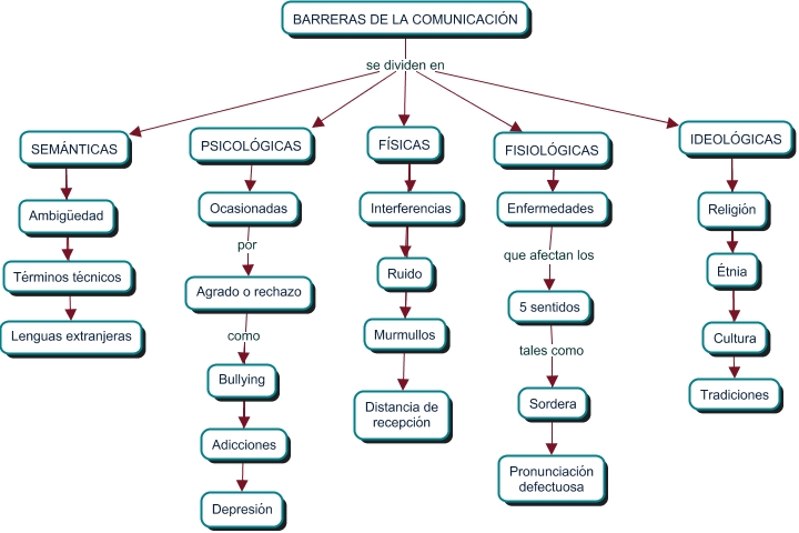 Este Cmap, tiene información relacionada con: Barreras d ela comunicación, FÍSICAS ???? Distancia de recepción, FÍSICAS ???? Murmullos, BARRERAS DE LA COMUNICACIÓN se dividen en IDEOLÓGICAS, Agrado o rechazo como Adicciones, BARRERAS DE LA COMUNICACIÓN se dividen en PSICOLÓGICAS, FÍSICAS ???? Ruido, Enfermedades que afectan los 5 sentidos, FÍSICAS ???? Interferencias, IDEOLÓGICAS ???? Étnia, Agrado o rechazo como Bullying, SEMÁNTICAS ???? Lenguas extranjeras, Agrado o rechazo como Depresión, IDEOLÓGICAS ???? Religión, IDEOLÓGICAS ???? Tradiciones, IDEOLÓGICAS ???? Cultura, FISIOLÓGICAS ???? Enfermedades, BARRERAS DE LA COMUNICACIÓN se dividen en FISIOLÓGICAS, 5 sentidos tales como Pronunciación defectuosa, SEMÁNTICAS ???? Ambigüedad, BARRERAS DE LA COMUNICACIÓN se dividen en SEMÁNTICAS