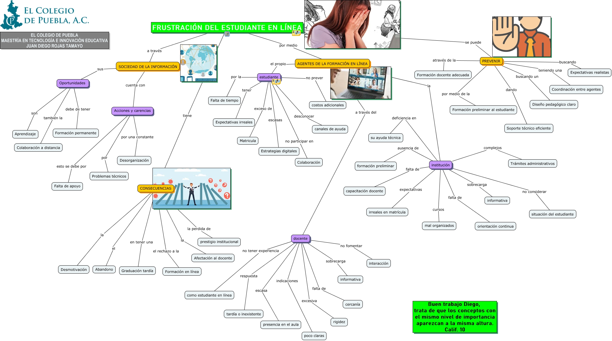Este Cmap, tiene información relacionada con: Tarea Diego, FRUSTRACIÓN DEL ESTUDIANTE EN LÍNEA tiene CONSECUENCIAS, institución cursos mal organizados, institución deficiencia en su ayuda técnica, docente no fomentar interacción, SOCIEDAD DE LA INFORMACIÓN cuenta con Acciones y carencias, Oportunidades son Aprendizaje, docente falta de cercanía, FRUSTRACIÓN DEL ESTUDIANTE EN LÍNEA a través SOCIEDAD DE LA INFORMACIÓN, AGENTES DE LA FORMACIÓN EN LÍNEA el propio estudiante, institución falta de orientación continua, estudiante por la Falta de tiempo, PREVENIR buscando un Diseño pedagógico claro, Acciones y carencias por una constante Desorganización, docente excesiva rigidez, institución sobrecarga informativa, estudiante exceso de Matricula, docente respuesta tardía o inexistente, SOCIEDAD DE LA INFORMACIÓN sus Oportunidades, CONSECUENCIAS en tener una Graduación tardía, institución complejos Trámites administrativos
