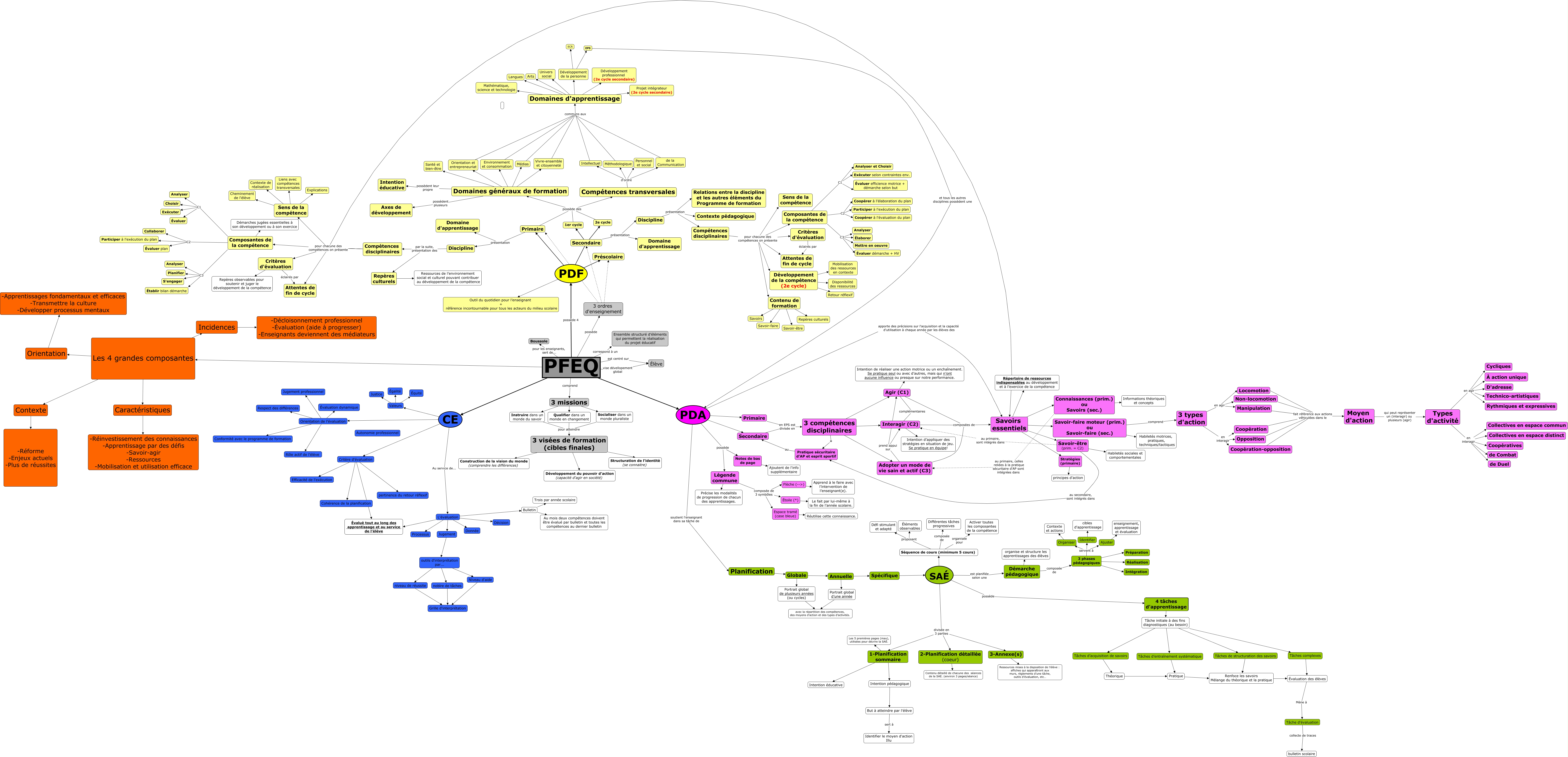 Cette carte de concepts créée avec IHMC CmapTools traite de: lol 1 phil, Critères d'évaluation éclairés par Attentes de fin de cycle, Valeurs Équité, Critère d'évaluation pertinence du retour réflexif, Socialiser dans un monde pluraliste pour atteindre 3 visées de formation (cibles finales), Jugement outils d'interprétation par..., Critères d'évaluation Repères observables pour soutenir et juger le développement de la compétence, Valeurs Égalité, 3 types d'action en interagir Coopération-opposition, Primaire possède des Compétences transversales, Compétences disciplinaires pour chacune des compétences on présente Critères d'évaluation, Types d'activité en interagir Coopératives, Composantes de la compétence C1 Choisir, Composantes de la compétence C2 Participer à l'exécution du plan, Les 4 grandes composantes Caractéristiques, Ajuster enseignement, apprentissage et évaluation, Bulletin Trois par année scolaire, Valeurs Justice, PDA soutient l'enseignant dans sa tâche de Planification, Locomotion fait référence aux actions véhiculées dans le Moyen d'action, Secondaire en EPS est divisée en 3 compétences disciplinaires