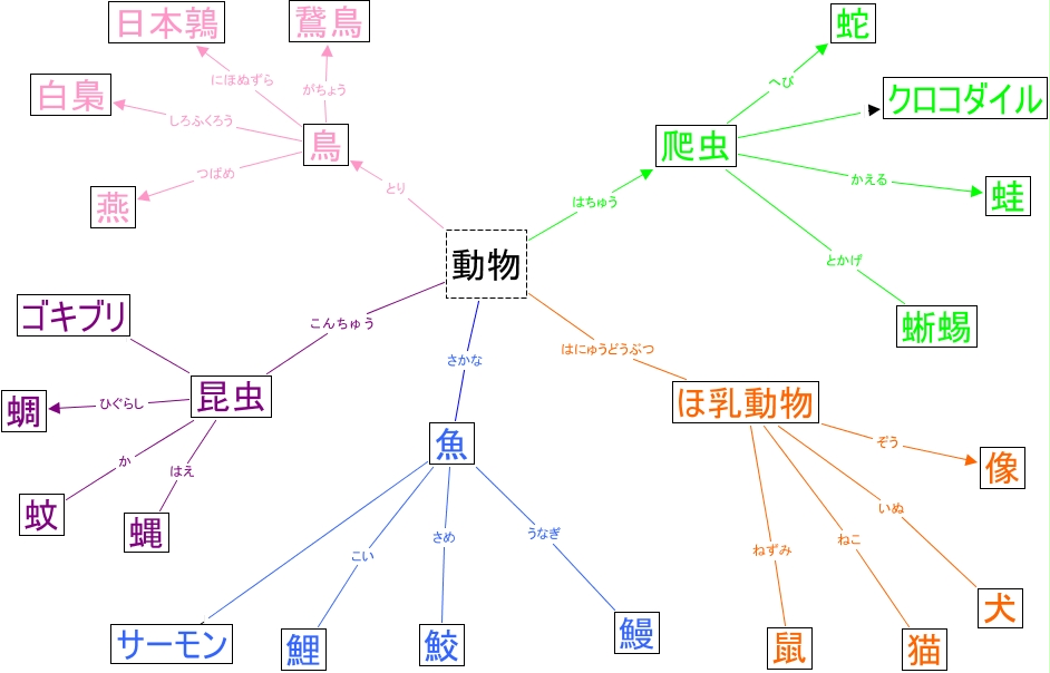 This Concept Map, created with IHMC CmapTools, has information related to: HB20120412, 昆虫 ひぐらし 蜩, 魚 こい 鯉, ほ乳動物 いぬ 犬, 動物 さかな 魚, 魚 さめ 鮫, 爬虫 クロコダイル, 動物 とり 鳥, 鳥 つばめ 燕, 爬虫 とかげ 蜥蜴, 動物 はちゅう 爬虫, 鳥 しろふくろう 白梟, 昆虫 か 蚊, 昆虫 ゴキブリ, 動物 こんちゅう 昆虫, 魚 うなぎ 鰻, 鳥 がちょう 鵞鳥, 爬虫 へび 蛇, 昆虫 はえ 蝿, 鳥 にほぬずら 日本鶉, ほ乳動物 ねずみ 鼠